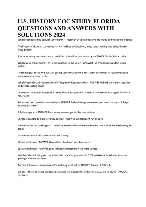 Eoc American History Florida Study Guide Answers